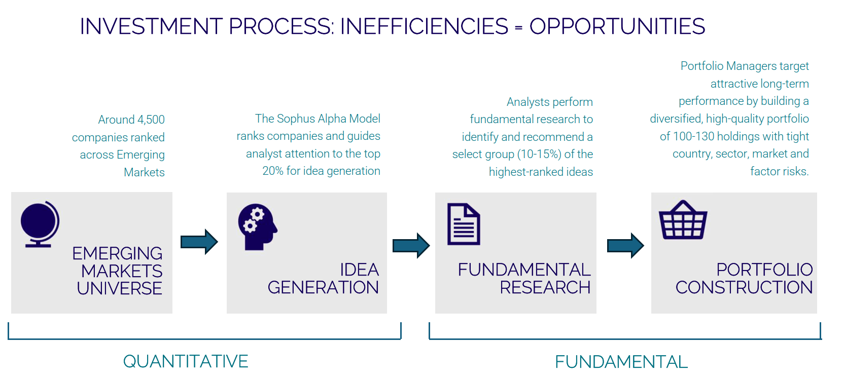 - The team’s proprietary quantitative screening model, called the Sophus Capital Emerging Markets Alpha Model (“EM Alpha Model”), is a comparative framework that ranks around 4,500 companies across emerging markets.